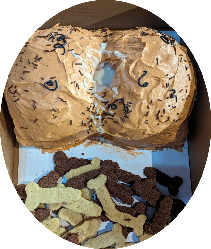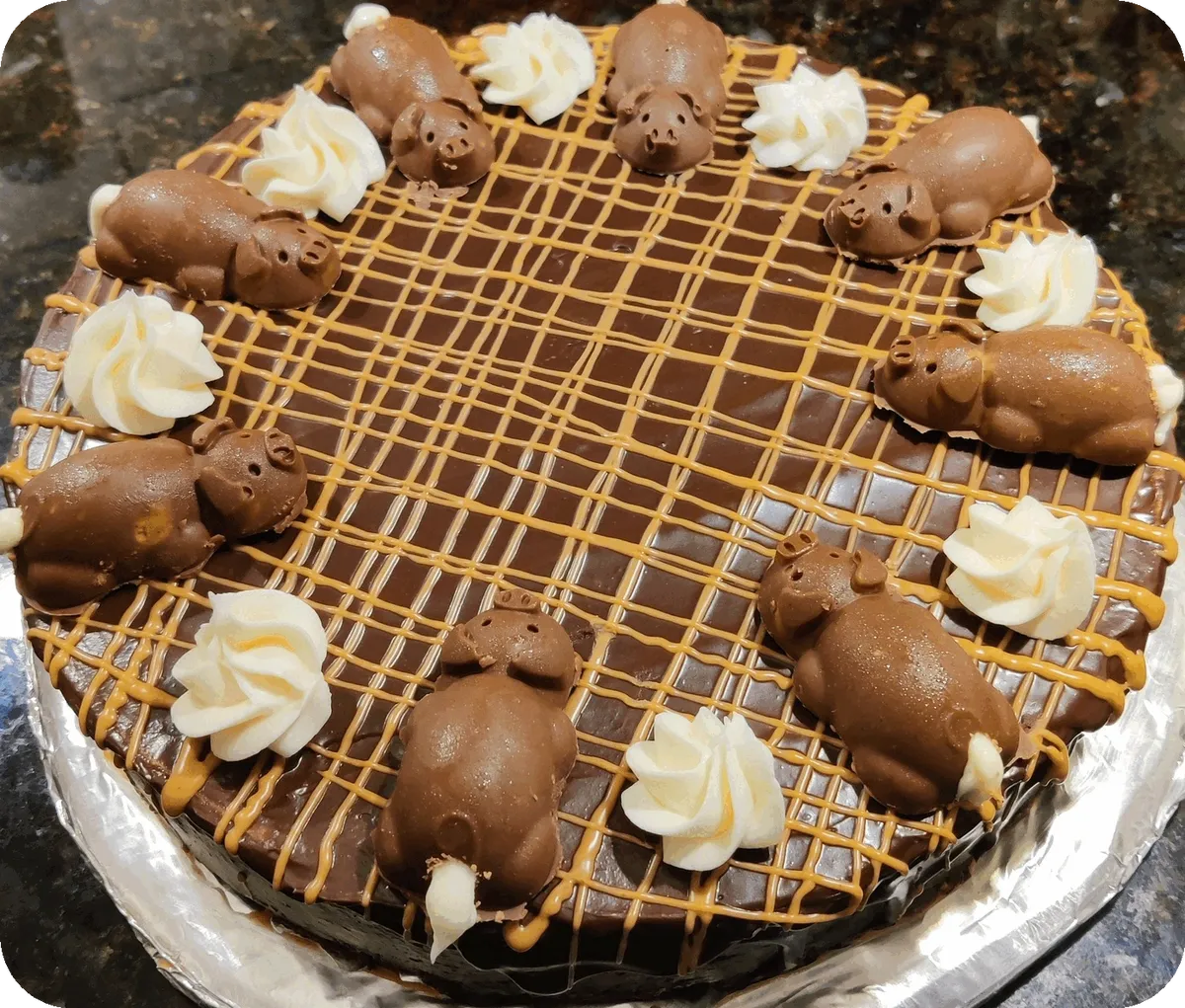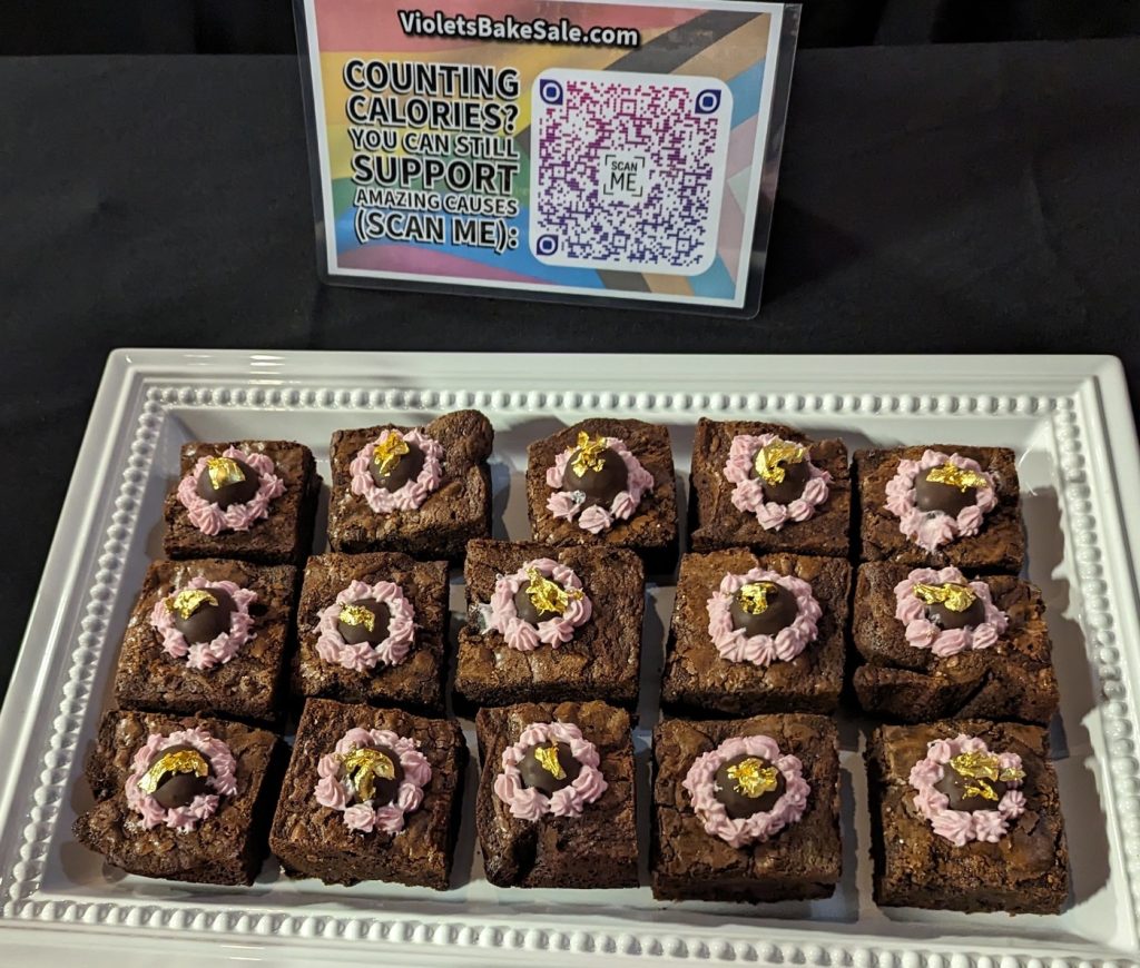 Our volunteer bakers and pastry chefs are experts in their craft. Behold the executive chef that whipped up this masterpiece of peanut butter stuffed chocolate pigs on a dark chocolate cake. But even amateurs can make delicious and beautiful treats for our patrons to bid on.