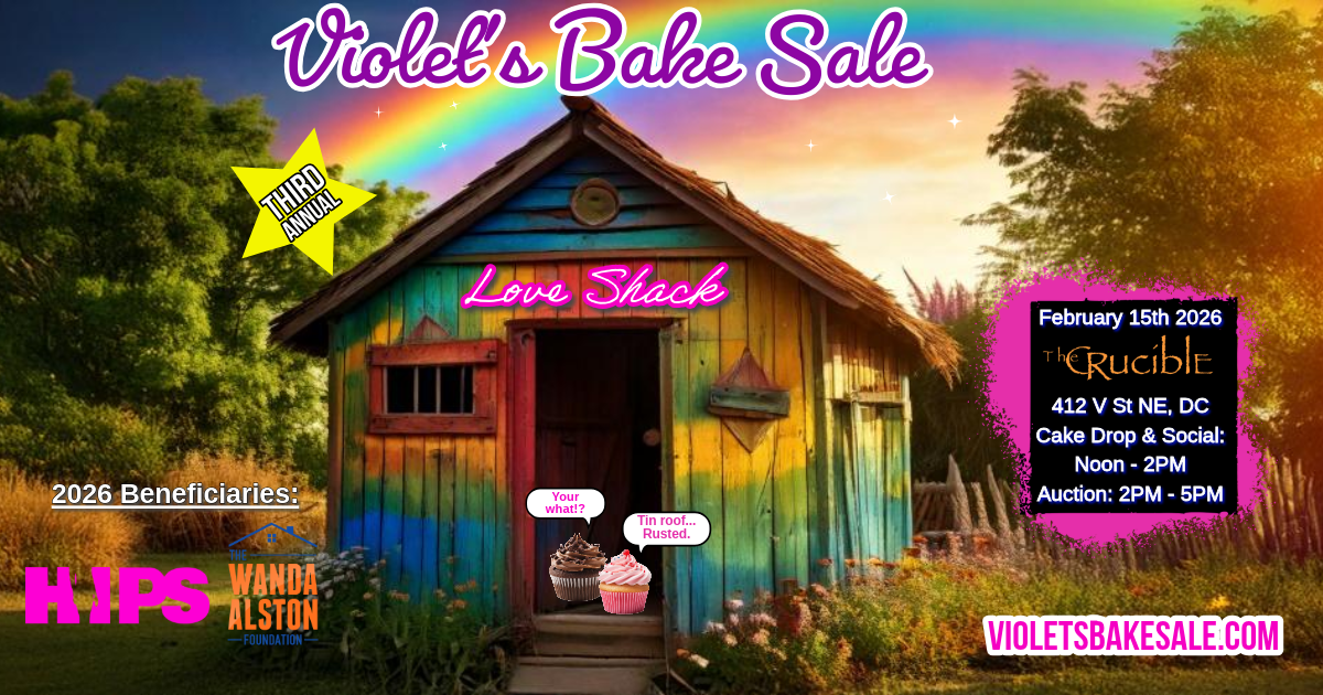 At Violet’s Bake Sale, our passion for baking started as a dire need to spread the love, ’cause love rules at the love shack. This year we want you to come on out to our funky little shack, and show off your amazing confections, and bid on some delectables all for a good cause.